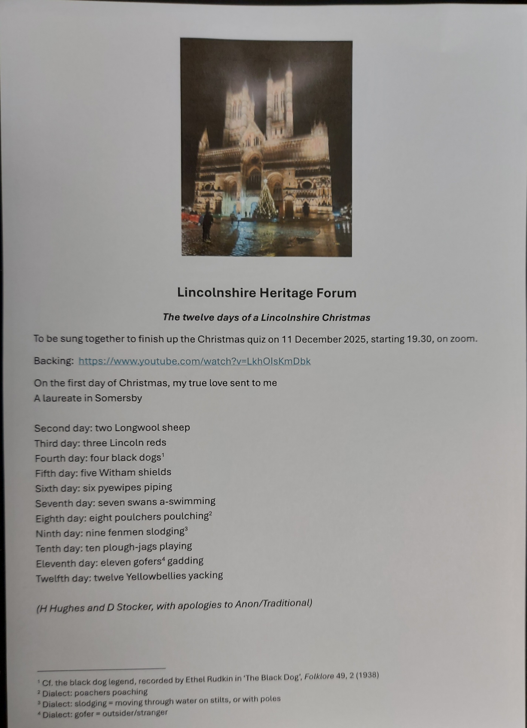 It will be on Zoom so you can join from the comfort of home, it will be multiple choice so no blank spaces on your answer sheet, (There will be prizes) and hopefully by the end you will have consumed enough mulled wine to sing our new Lincolnshire version of the Twelve Days of Christmas with gusto.